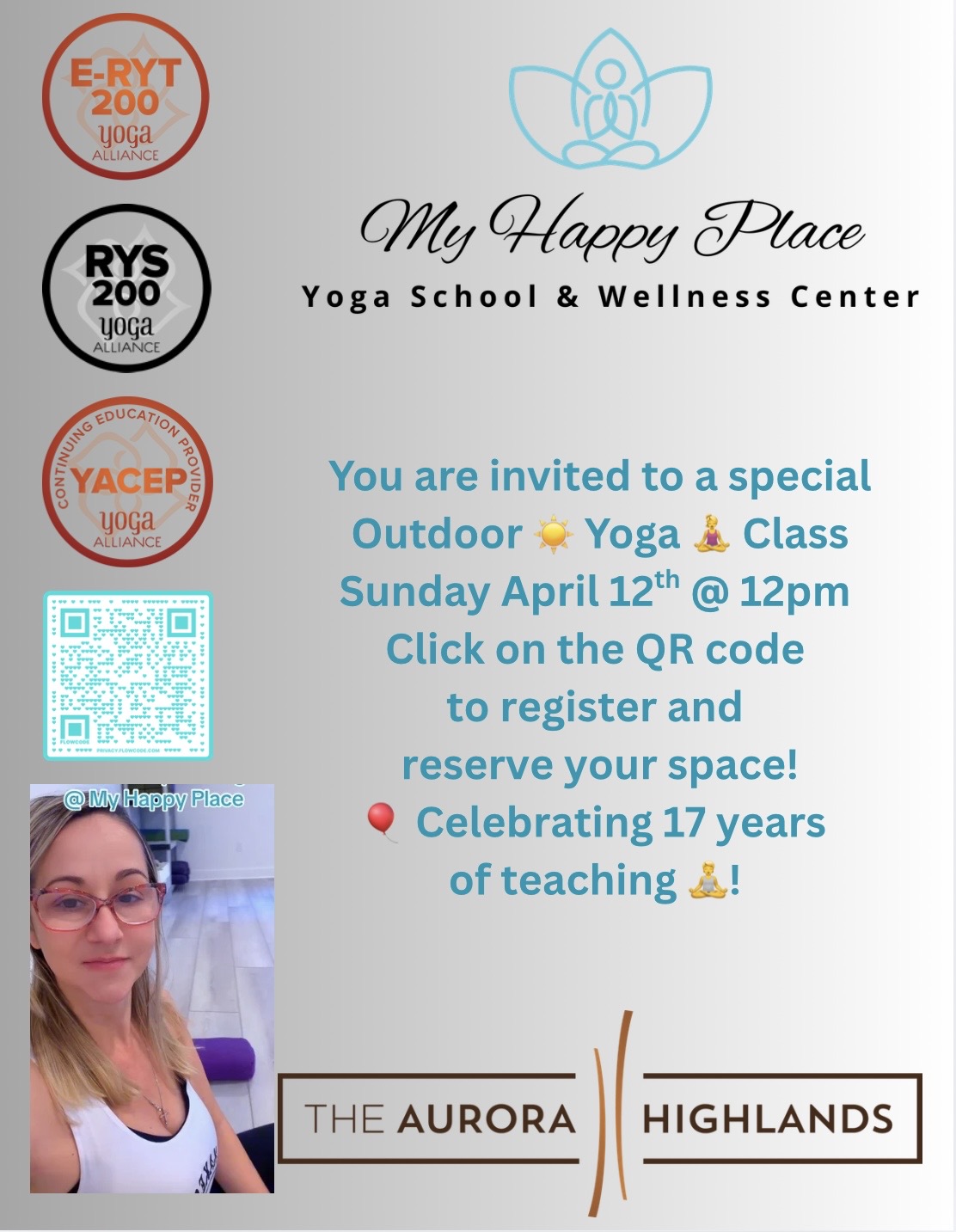 Join me to celebrating 17 years of teaching yoga! Let’s celebrate with a beautiful outdoor Yoga Class. Just click on the link below to register!